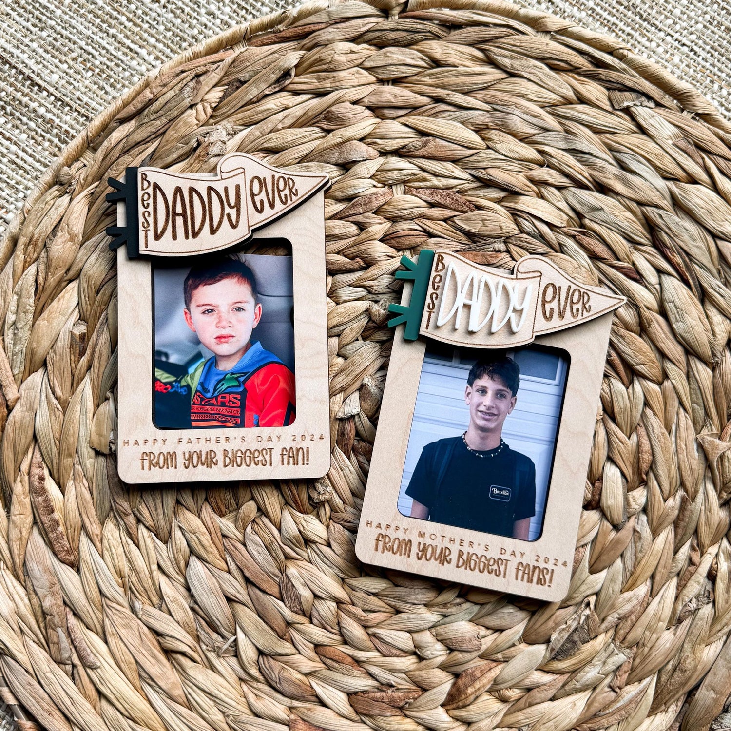 Celebrate Dad with our Best Ever Photo Frame Magnet/Visor Clip! Personalized with the message "From Your Biggest Fan", it's the perfect Fathers Day gift. You choose to have it as a fridge magnet or a frame to clip onto his car visor. Show off dad's #1 status with this fun and practical accessory.