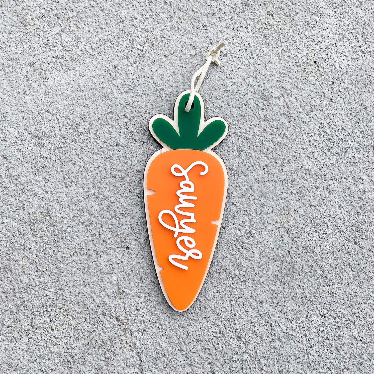 Show your favorite Easter Bunnies an egg-cellent time with our Carrot Easter Basket Tag! This customizable tag is made with chic wood and acrylic to take your Easter style up a notch. Perfect for the kids and adults in your life who still get excited about Easter! Hop to it - this tag's a real cutie!