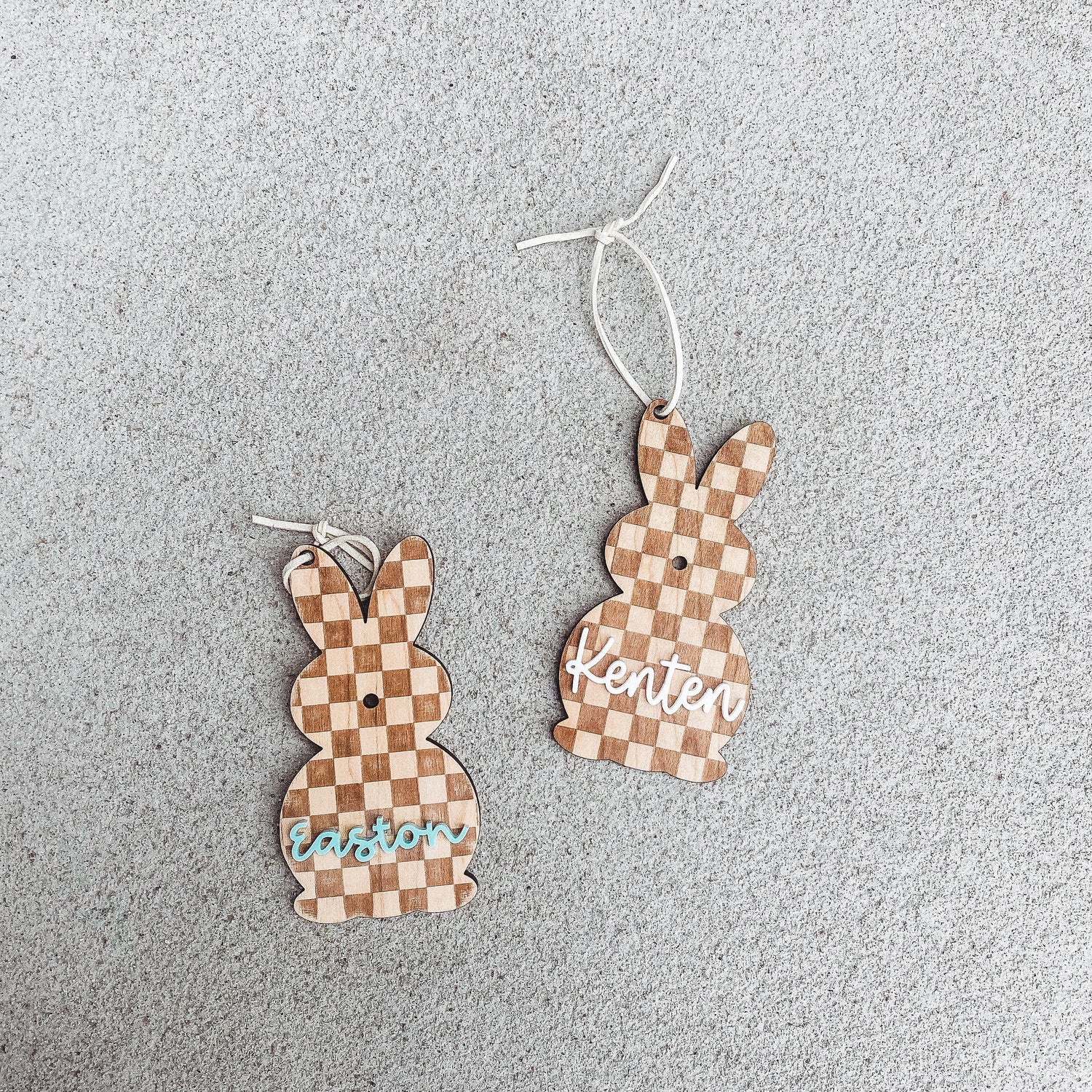This Checker Bunny Easter Basket Tag is the answer to all your Easter wishes! Personalized with your child's name and featuring a checkered bunny design, this custom tag is perfect for making your kids’ baskets stand out. Crafted from a mix of wood and acrylic, it’s a unique way to hop into the season with style! Who knew Easter could be this fun?!