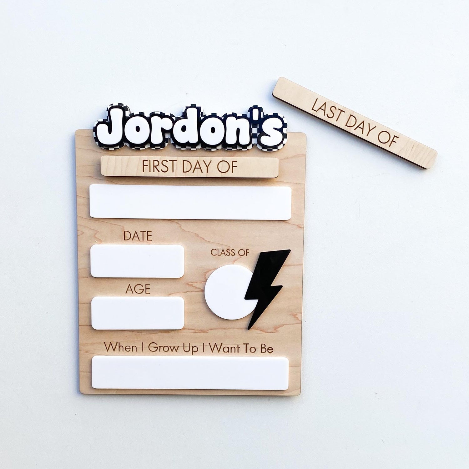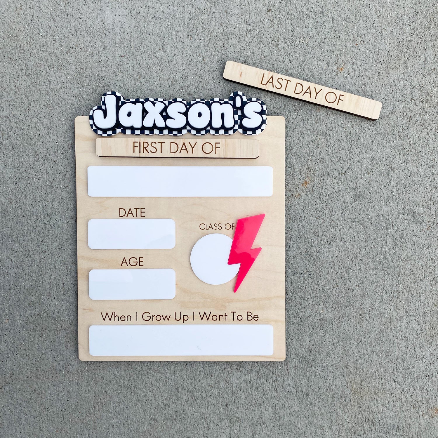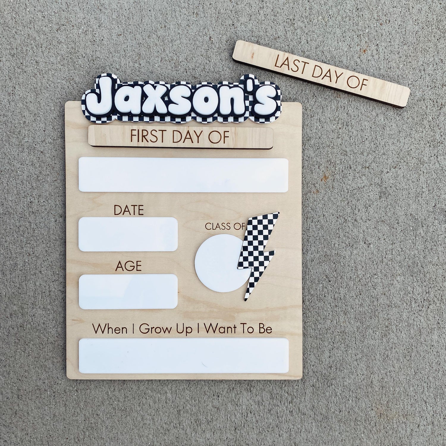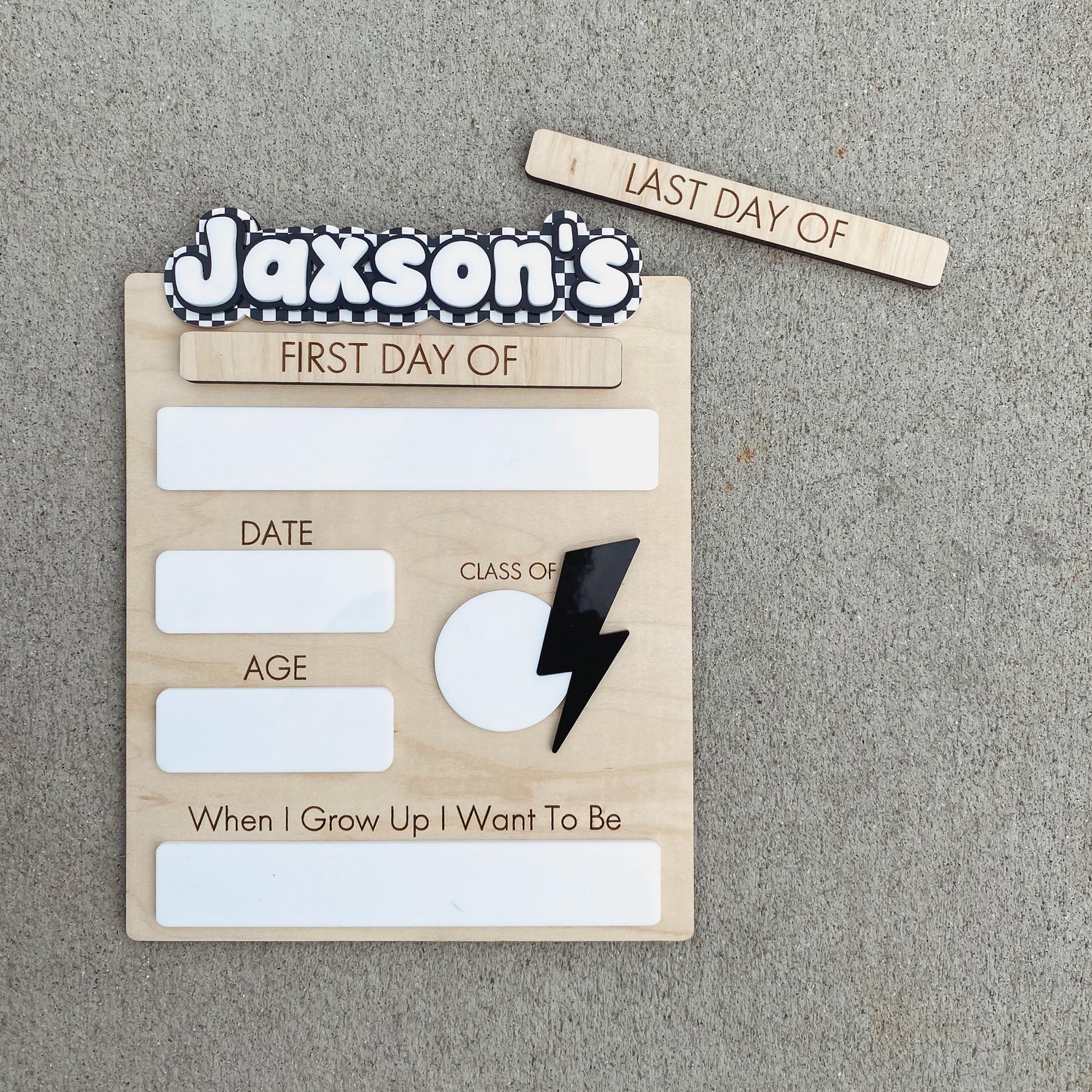 Start the school year off right with this lightning-quick checkerboard first day of school sign! Customize it with your child's name and make it unique and unforgettable. Strike up the band and get ready to jump into the new year!