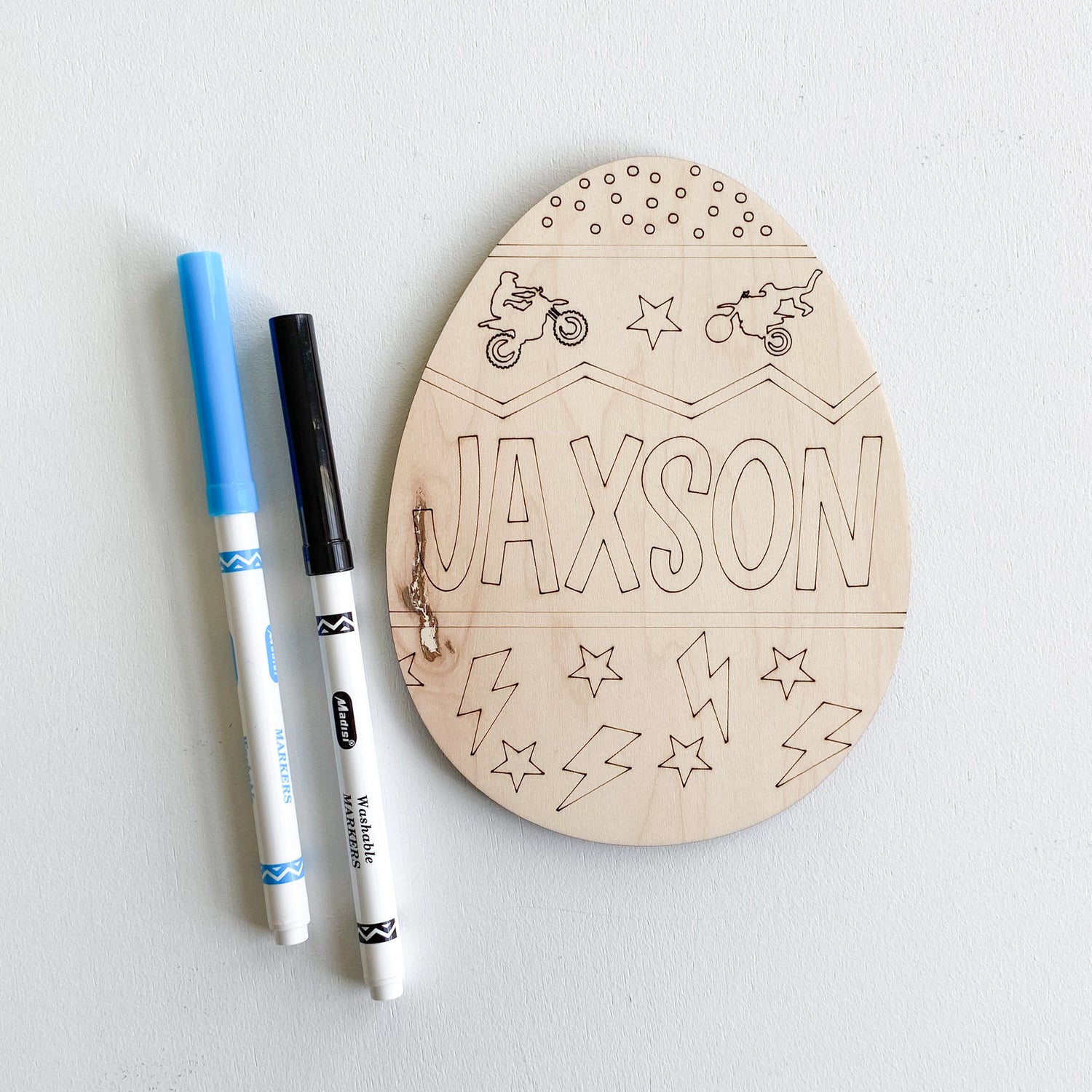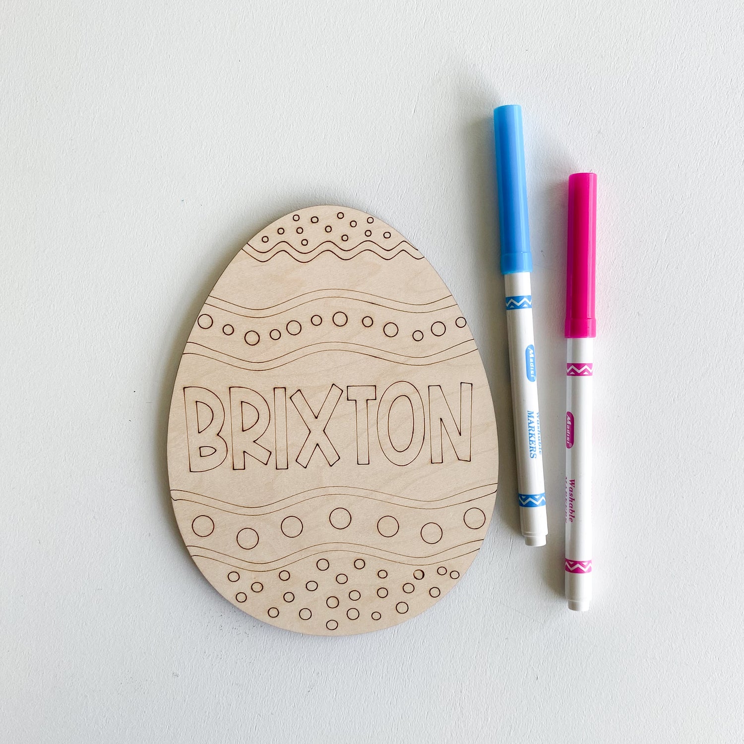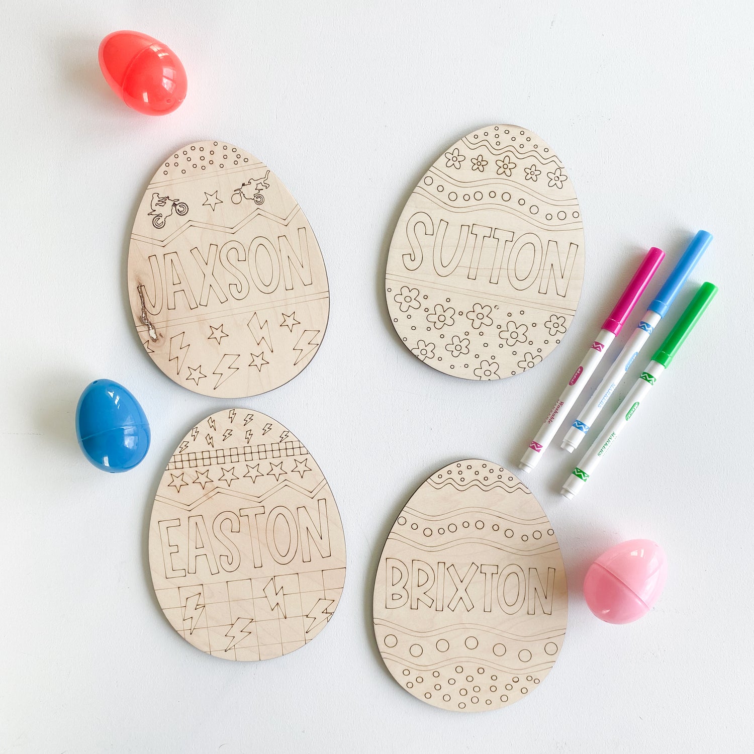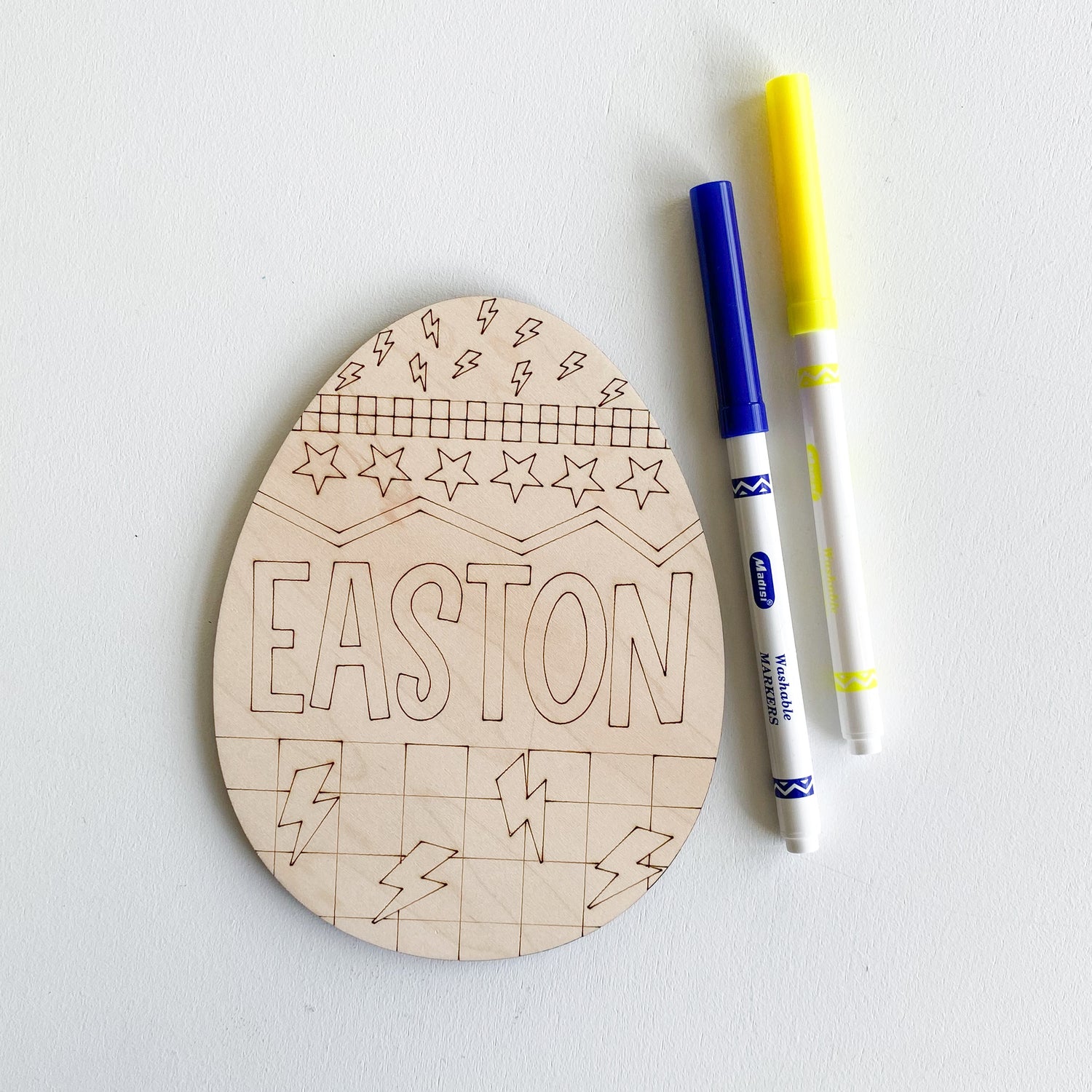 -Each item includes 1 custom egg and 2 markers