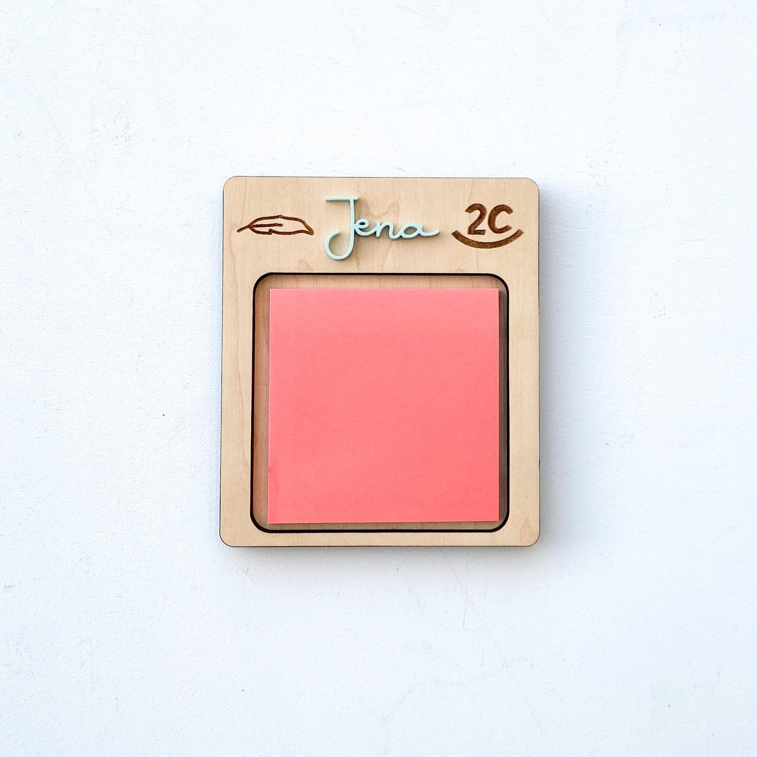 Make your mark with your own custom family brand Sticky Note Holder! Personalize this perfect notepad holder and make it a one-of-a-kind gift for a special someone! Just think - your own fam logo on this desktop classic! YES!
