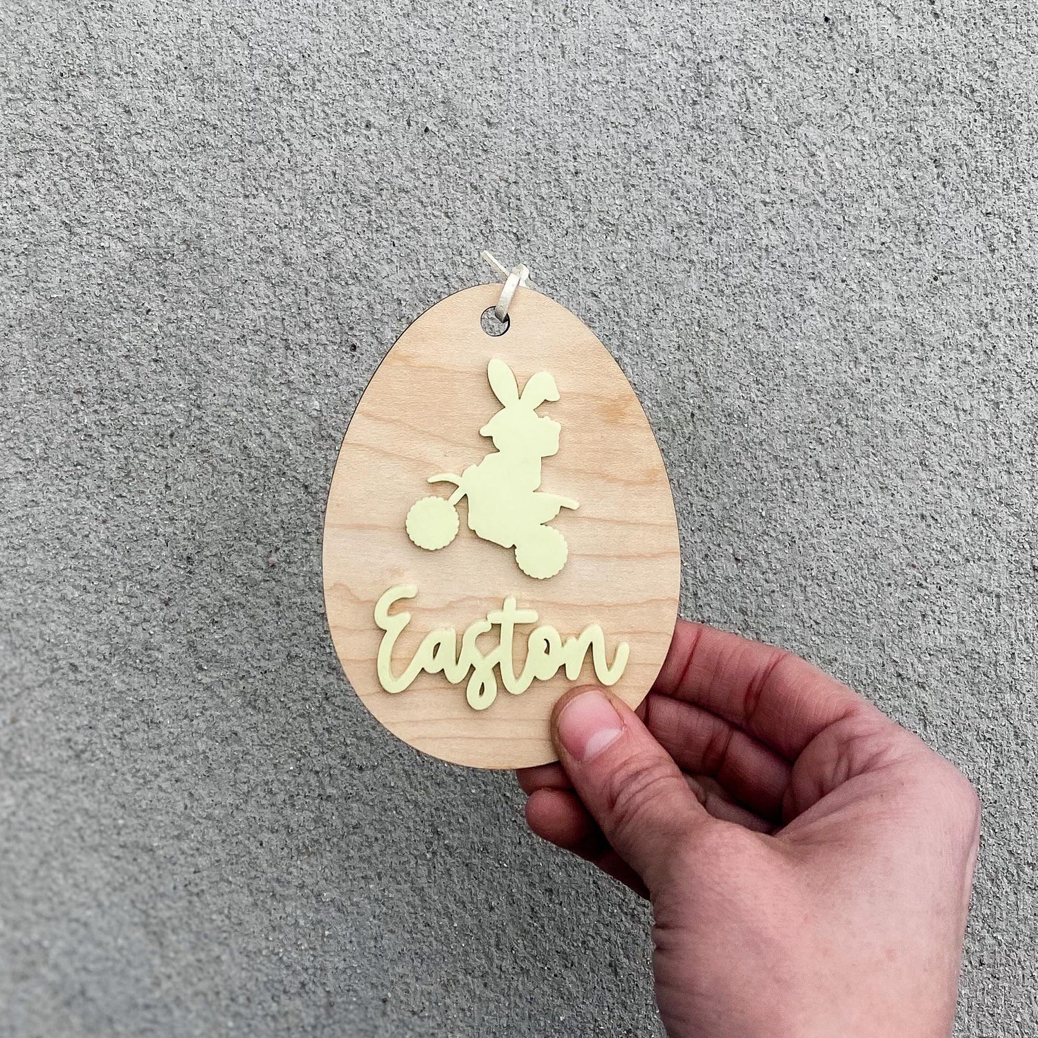 Rev up your Easter celebrations with this handmade wooden motocross Easter basket tag! Perfect for little bikers in your life, this tag includes dirt bike and Easter motifs, making it the perfect festive addition to your celebration! Treat the kids to something extra special this Easter with a little two-wheeled magic!