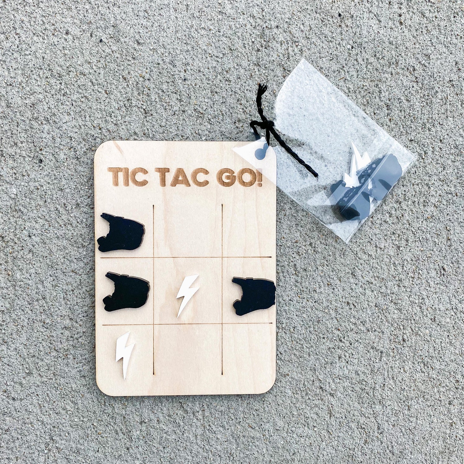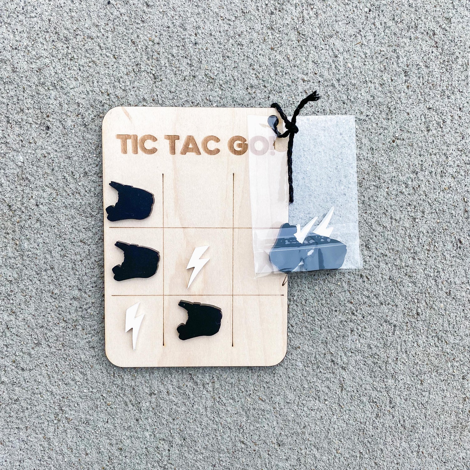 Bring your dirt biking to a whole new 'level' with this eye-catching game of Dirt Bike Tic Tac Toe! It's the perfect way to get your kids to put their head 'in the game' with this supercharged edition of classic Tic Tac Toe. Built with wood and acrylic, it's just the thing to make your birthday parties or Easter baskets even more wild!