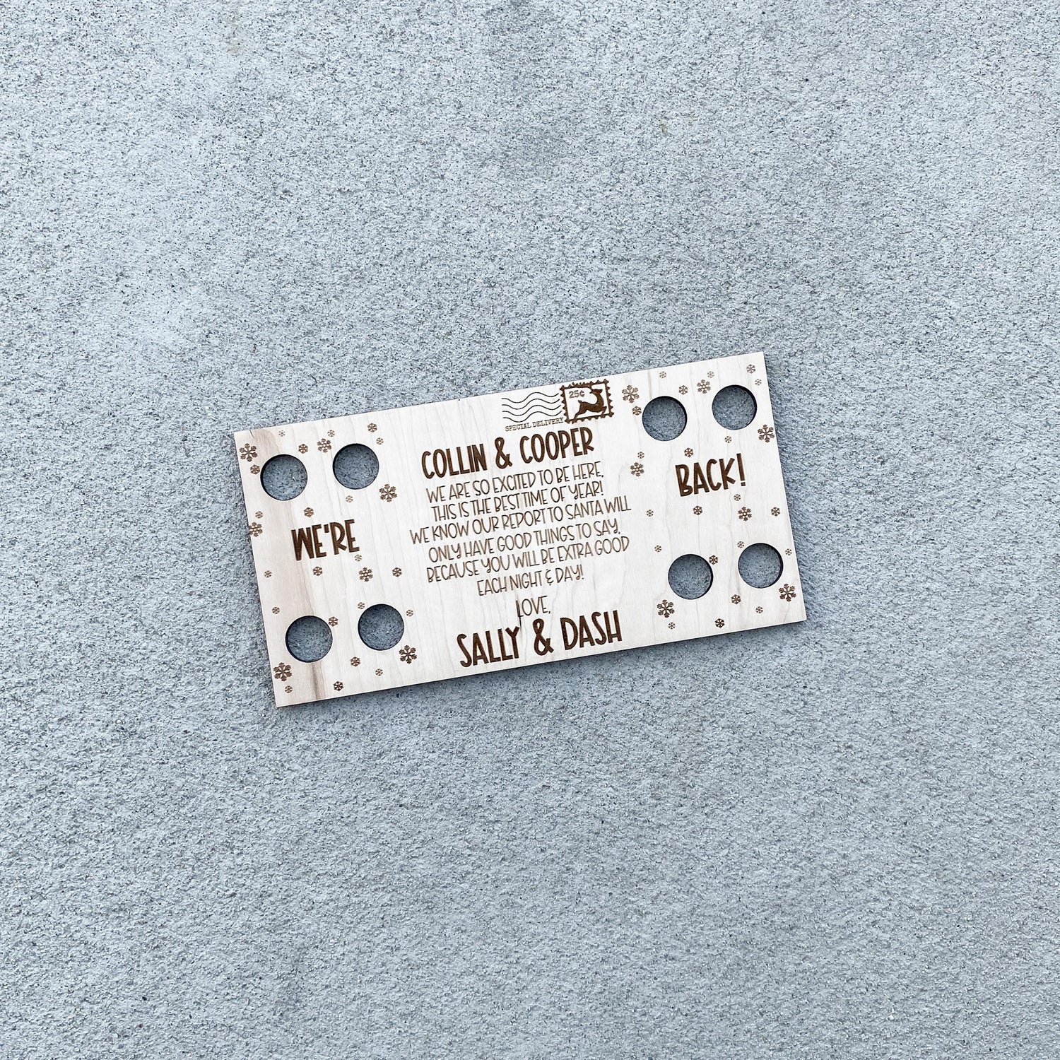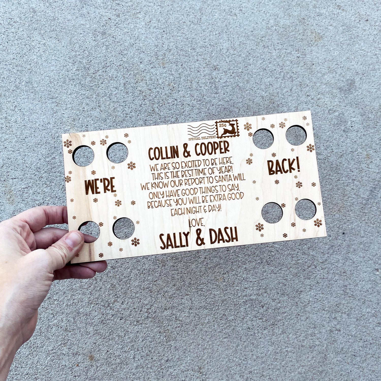 This Elf Postcard celebrates the tradition of the Elf, with a classic I’m Back message. Designed to hold two elves, this is perfect to welcome your elves back for the Christmas season.