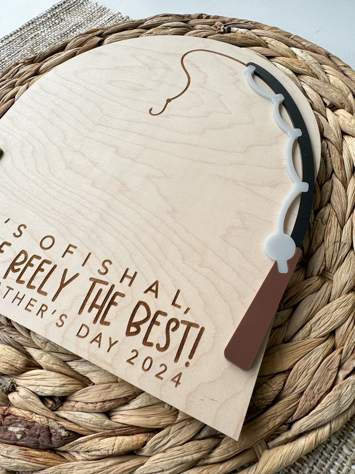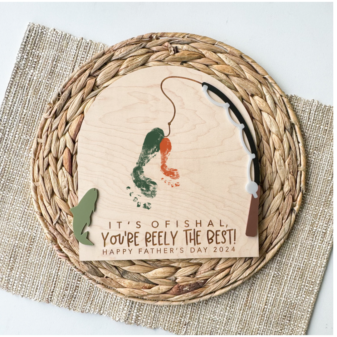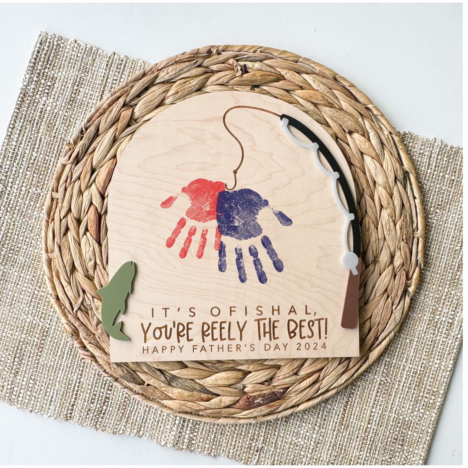 Celebrate Father's Day with this unique handprint or footprint keepsake gift! Show dad that he is "O-Fish-ally" the best with this fishing rod design. Perfect for fathers who love to fish and have a sense of humor. Give a gift that will make him smile (and maybe even shed a tear)!