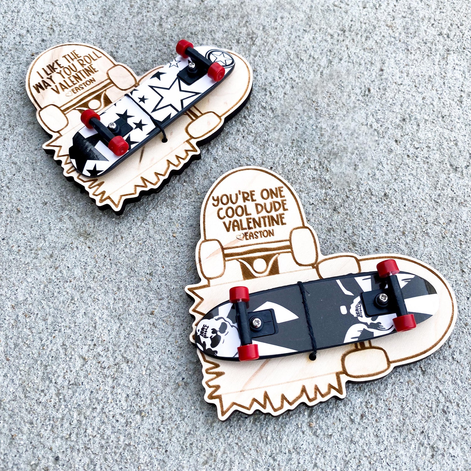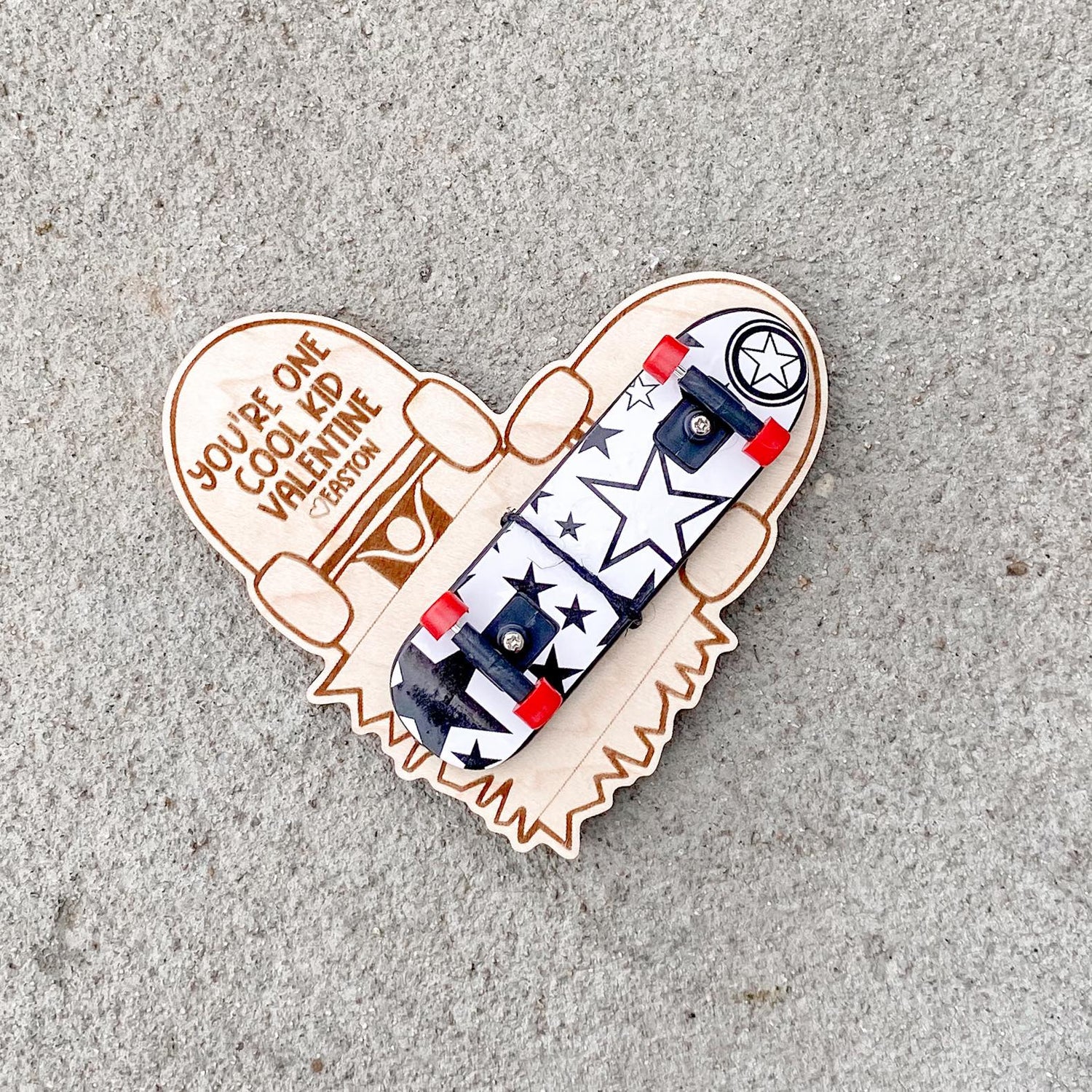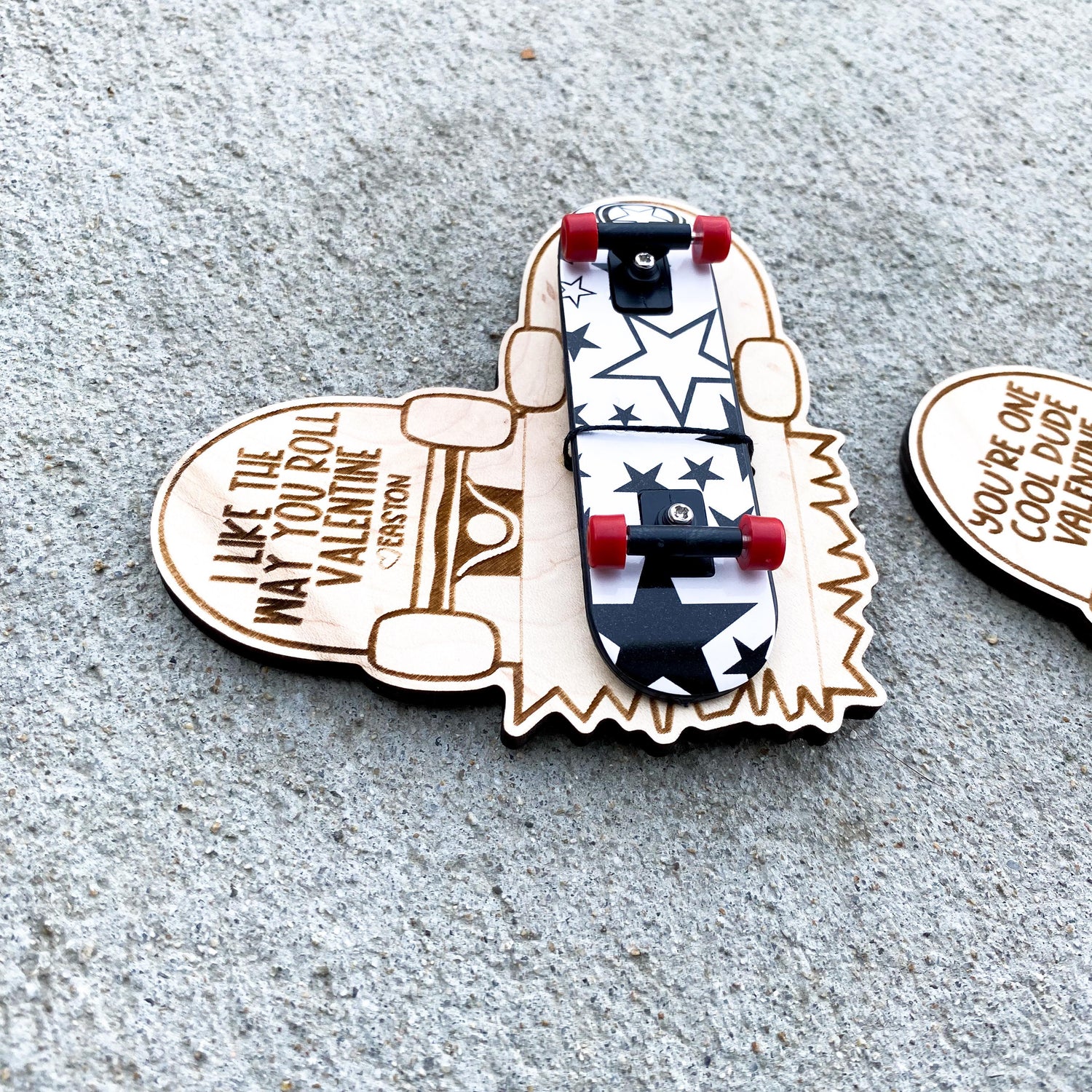 "Get ready to impress with these Mini Skateboard Valentines. Perfect for cool kids (and their parents), these mini skateboards add a playful touch to any Valentines exchange. Great for class parties and guaranteed to skate into your heart (without doing any tricks)."