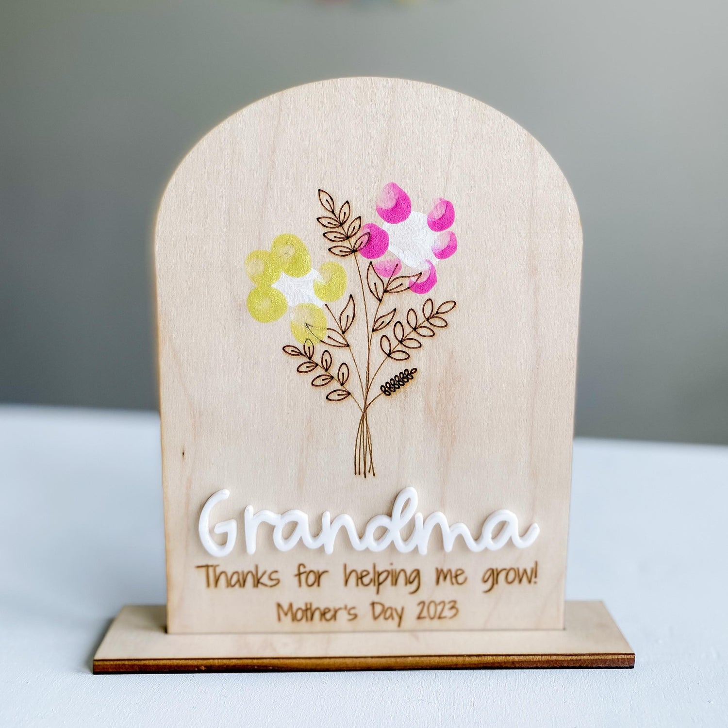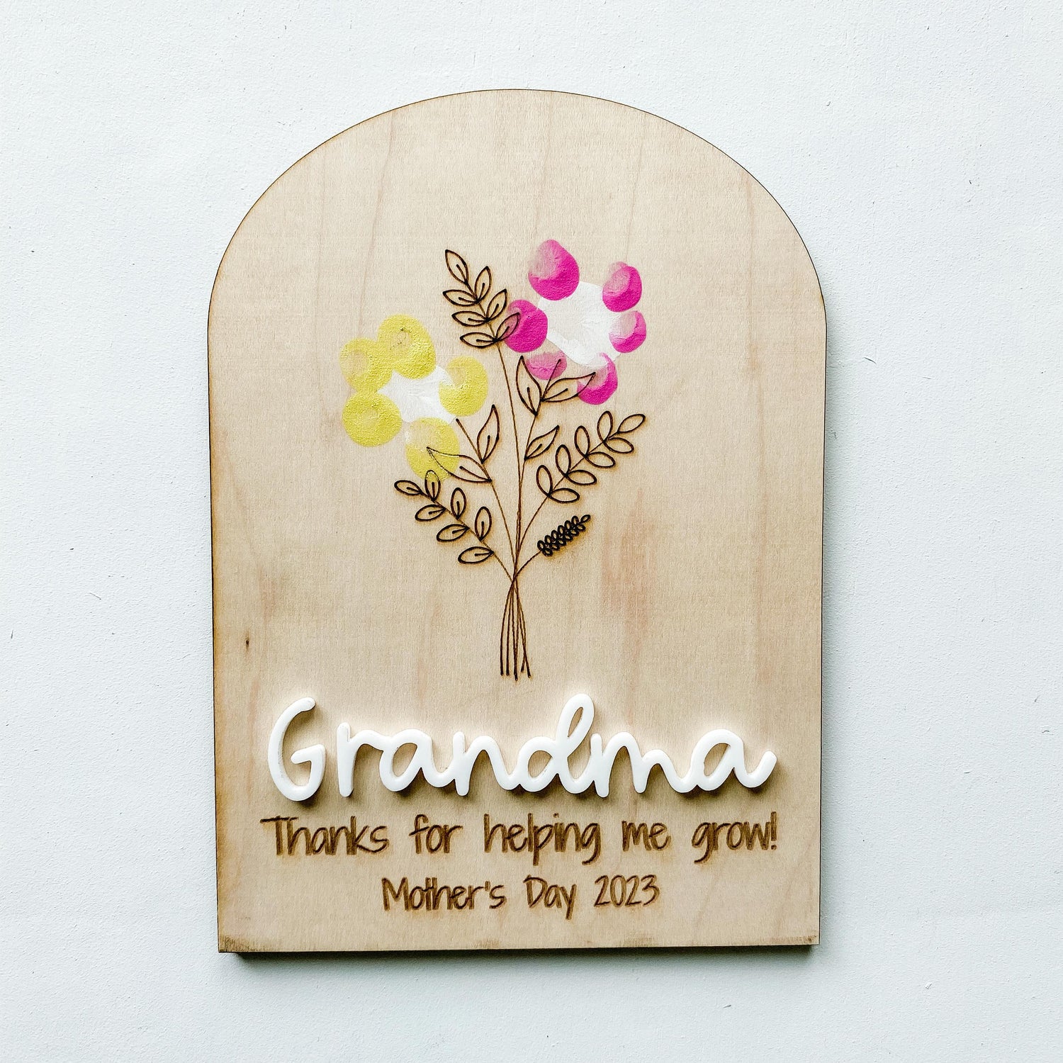 For the perfect way to show Mom and Grandma how much you care, check out this handmade Mother's Day gift! Featuring a fingerprint flower and personalized with Mom or Grandma's name, it's sure to put a smile on their face and make their day extra special! Kids, bloom some love for the most important ladies in your life!